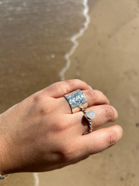 Anillo ancho con textura martillada, su medida es de 1,5 cm. Plata 925 Ver más detalles