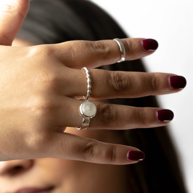 Anillo liso o con textura, con piedras disponibles a elección. Su espesor es de 4 mm Ver más detalles